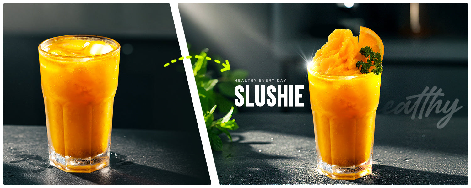 - SLUSHIE AUSWÄHLEN. Das Gerät startet mit der Standardtemperatur für eine optimale Konsistenz. Passen Sie die Konsistenz bei Bedarf an.