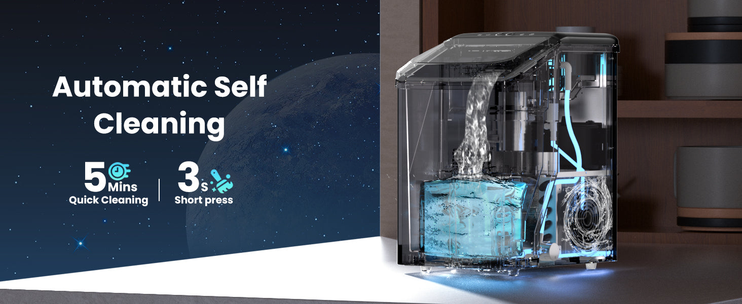 Die Wartung ist ein Kinderspiel. Drücken Sie 3 Sekunden lang, um den 5-minütigen automatischen Reinigungszyklus zu aktivieren. So bleibt Ihr Eis mit minimalem Aufwand frisch und Ihre Maschine makellos sauber.