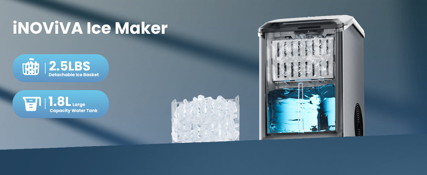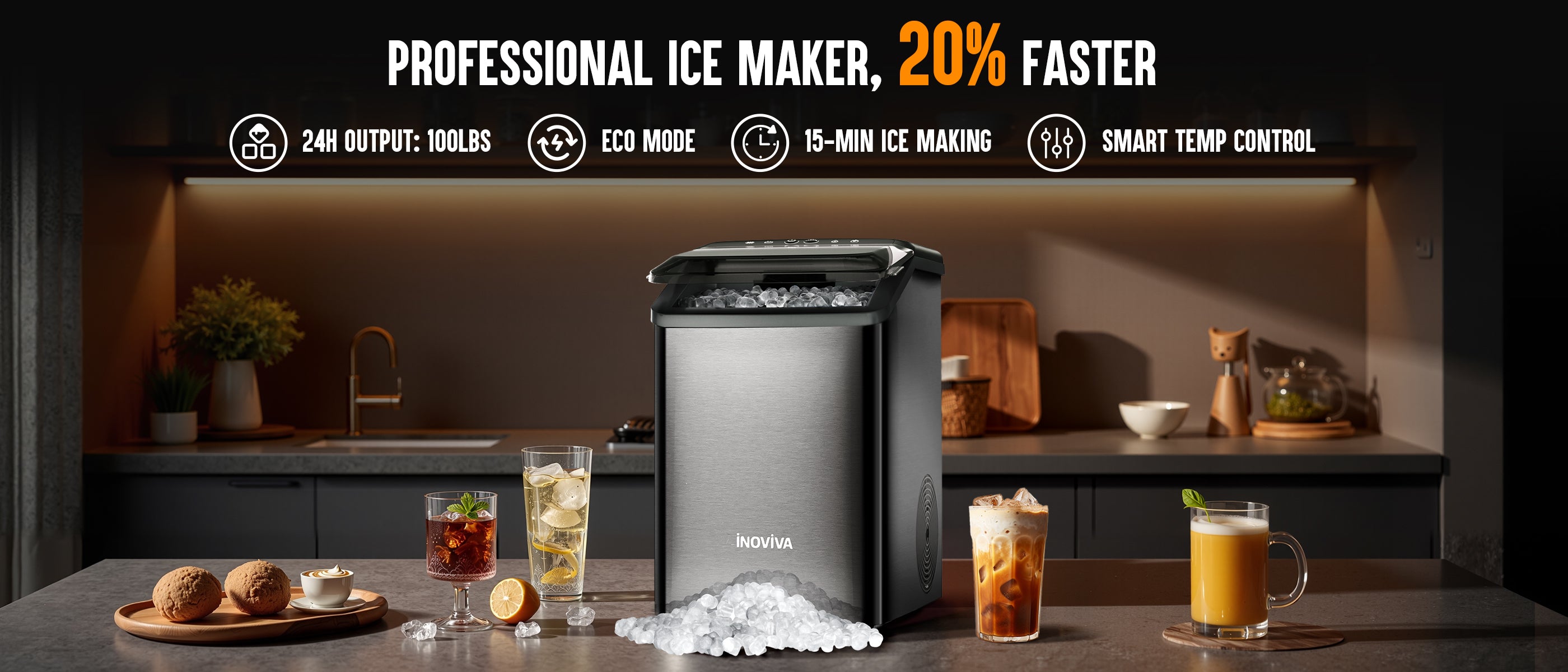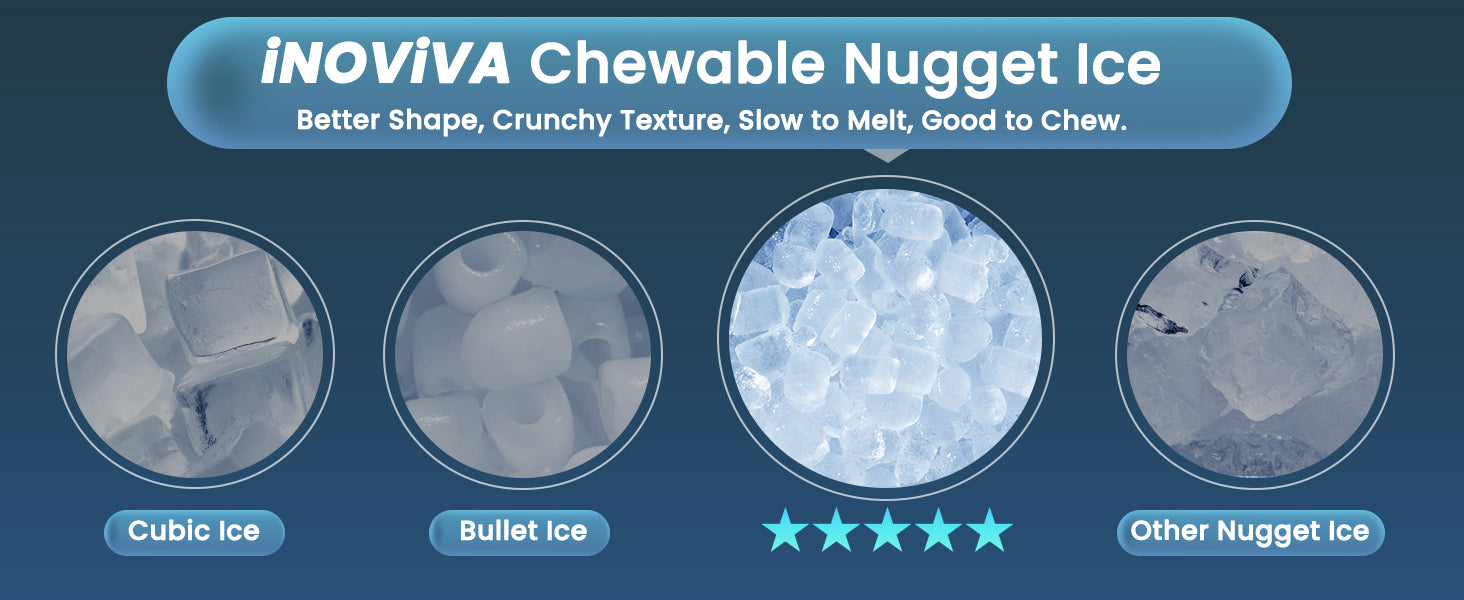 Werten Sie Ihr Eis auf, verändern Sie Ihr Leben – Inoviva Nugget-Eismaschine für die Arbeitsplatte. Perfekt kaubares, unwiderstehlich erfrischendes Nugget-Eis auf Knopfdruck, das gewöhnliche Momente in außergewöhnliche Erlebnisse verwandelt.