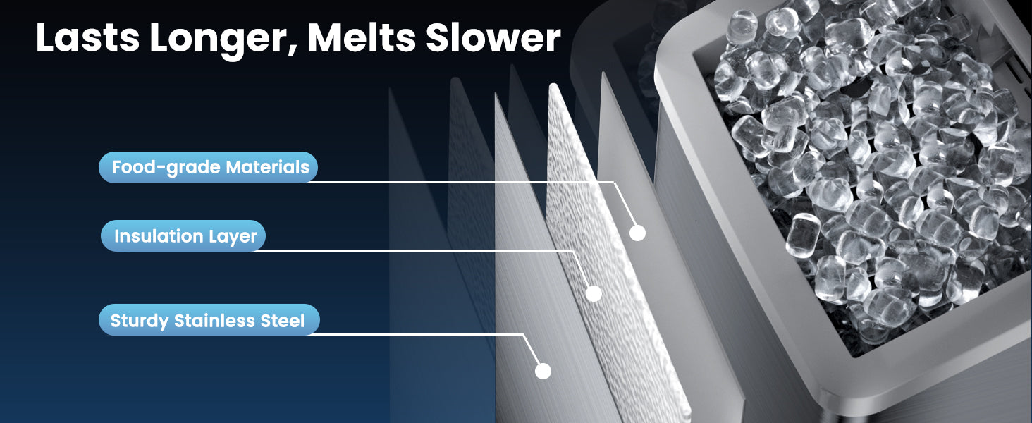 Ein verbesserter Kompressor und eine doppellagige Isolierung halten Ihr Eis auch nach dem Ende des Zyklus länger kühl. Ideal für die bedarfsgerechte Lagerung ohne schnelles Schmelzen.