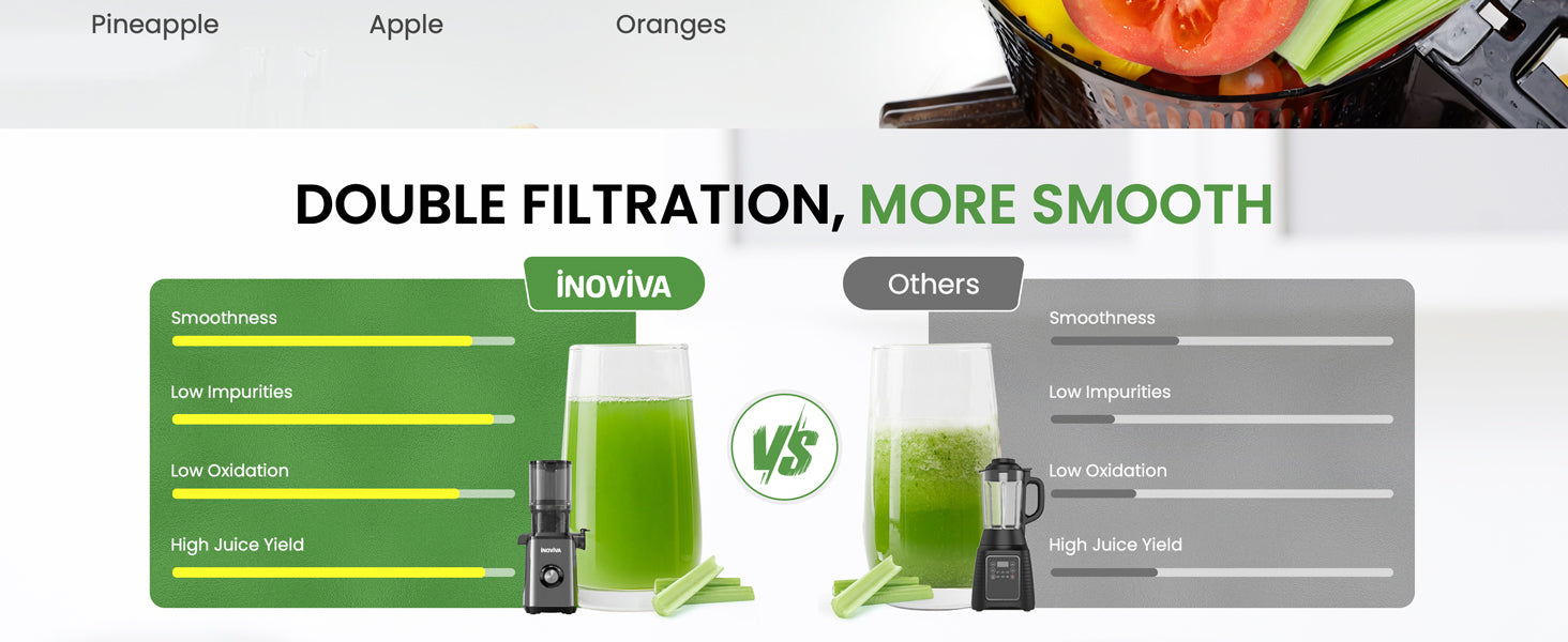 Genießen Sie jeden Tag eine Tasse gesunden Saft – frisch gepresst, voller Nährstoffe und mühelos hergestellt mit dem innovativen Inoviva Slow Juicer. Beginnen Sie Ihre Reise zu einem gesünderen, lebendigeren Lebensstil, Schluck für Schluck!